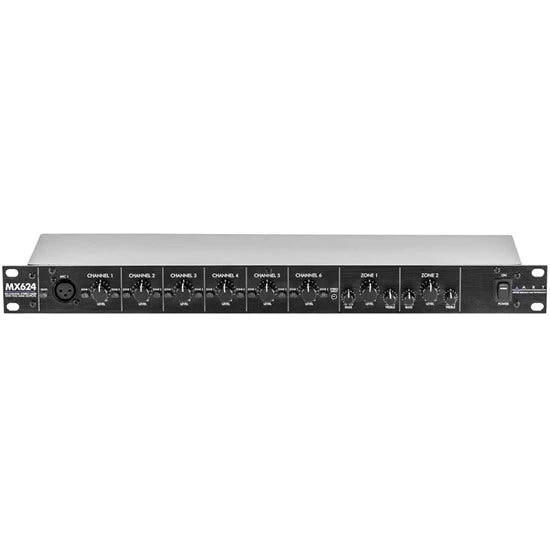 The ART MX624 may be used on stage, in the studio, or for permanent install applications including conference rooms, corporate boardrooms, churches, restaurants, small clubs, health clubs and more. A built-in power supply and single high 19-inch rack mount format allows for easy installation and reliable long-term operation.